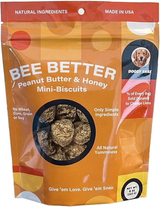 Bee Better Peanut Butter and Honey Dog Biscuits Made with Natural Ingredients and no Wheat, Corn, or Soy. No Artificial Ingredients, Colors, Flavors or preservatives.
