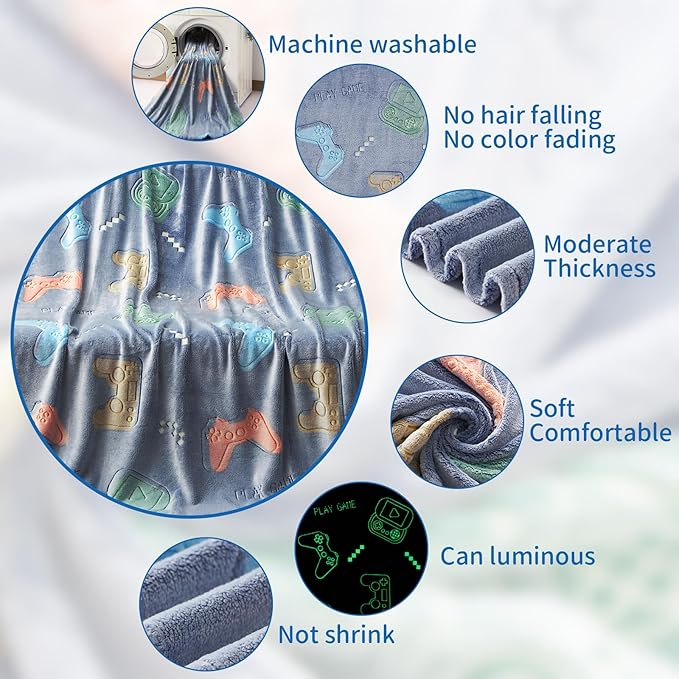 Glow in The Dark Gaming Blanket,Gamer Game Controller Gifts for Boys,Gift Toys for Kids Boys Teen Son Adult Gamepad Presents,Soft Blanket Gifts for Boy for Birthday Christmas Easter Gift, 50"x60"