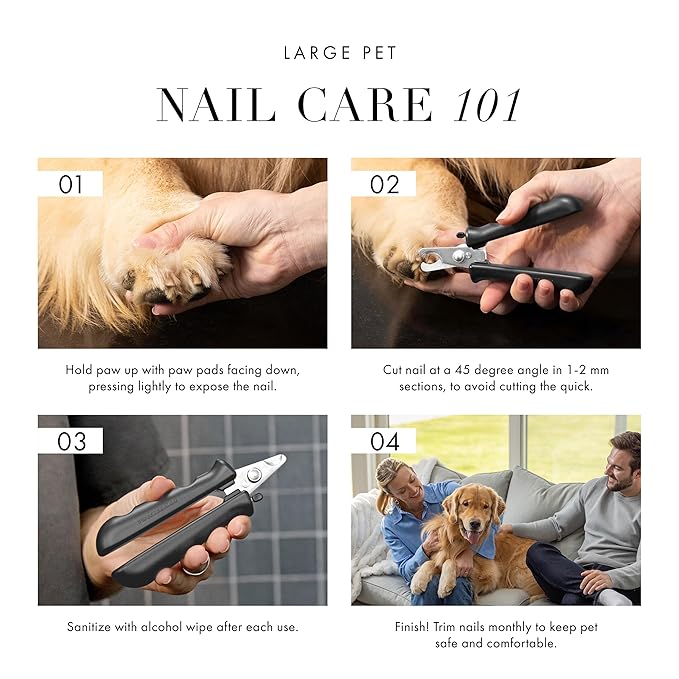 - HOW TO USE: Position yourself standing next to the pet's back legs. Lift the paw up with the paw pads facing down for better visibility to the nail. Hold the paw firmly on the top, pressing lightly to expose the nail.