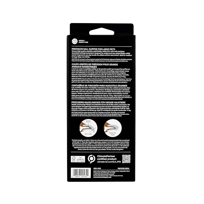 Tweezerman Large Nail Clippers for Dogs & Cats, Manual Professional Cat & Dog Nail Trimmer with Ergonomic Handle