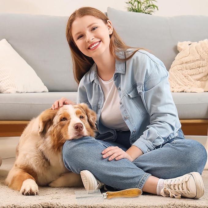 - Gentle & safe rounded teeth: Unlike sharp rakes, the smooth, rounded stainless steel pins glide through fur without scratching or irritating your pet's sensitive skin. Effectively untangles and removes hair while providing a comfortable grooming experience.