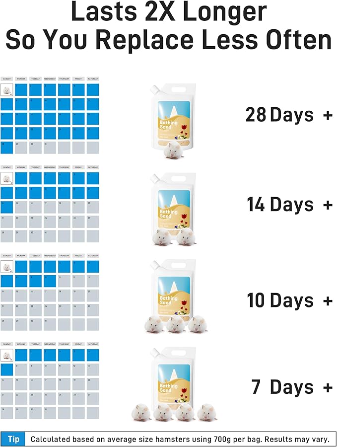 - 【Natural & Effortless Clean】This calcium-free gerbil sand is a breeze to clean and maintain, ideal for sand baths or creating a cozy, natural habitat, this sand helps remove grease and loose fur, so your pet stays shiny and well-groomed.