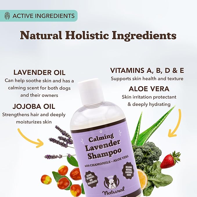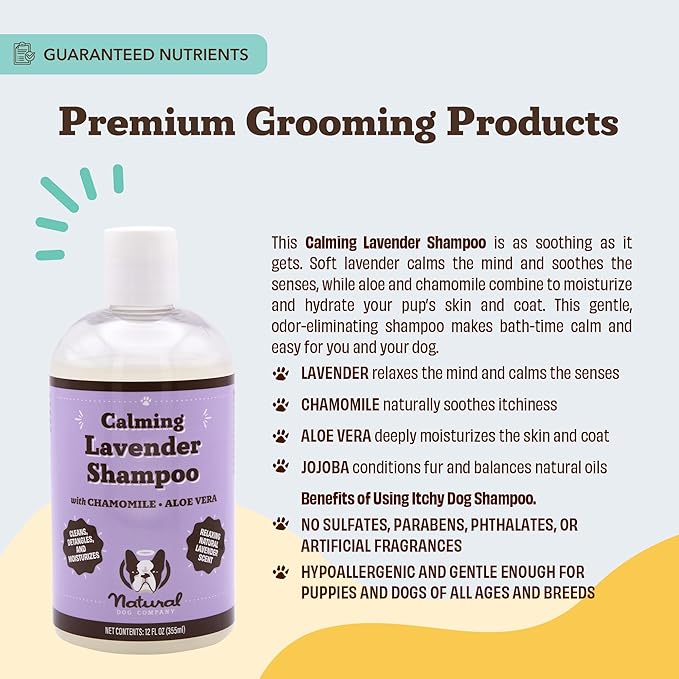 Natural Dog Company Calming Lavender Shampoo – Hypoallergenic, Sulfate & Paraben Free – Aloe Vera & Chamomile Soothing Wash for Sensitive, Stressed & Itchy Dogs – All Breeds & Ages – 12 oz