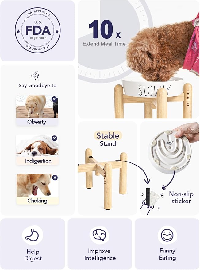 - Premium Ceramic, Prevent Your Dog From Eating Plastic - We found that plastic slow food bowls are easily damaged by dogs, they will bite and eat by mistake. The surface of the plastic will also fall off during use, which is not conducive to a healthy diet for dogs. We use premium ceramic, not easy to damage, so your dog could enjoy his food safely and healthily.