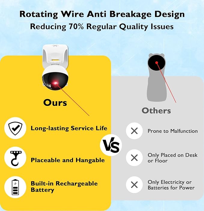 - 【Silent and Durable Motor】The automatic rotating laser light is made of a motor with a long service life and high reliability. The silent motor meets the entertainment and exercise requirements of cats while not generating excessive noise that would be annoying to both cats and people