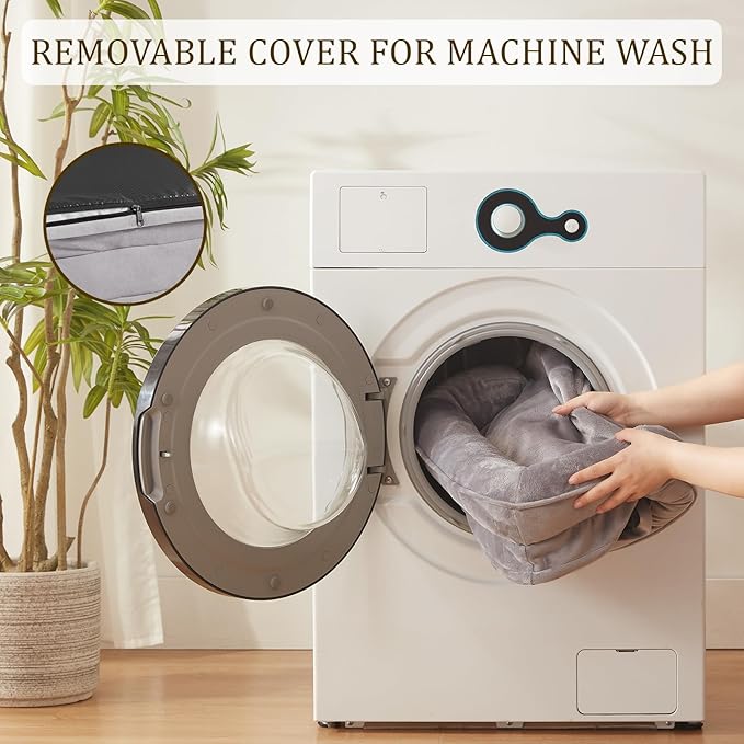 - Easy Care: Upgrade to our advanced waterproof dog bed. With full-coverage water-resistant fabric, even the bolster is protected from leaks. No noise, just pure comfort for your furry friend. The removable cover makes cleaning a breeze, simply unzip and toss it in the washing machine for a fresh and clean bed.