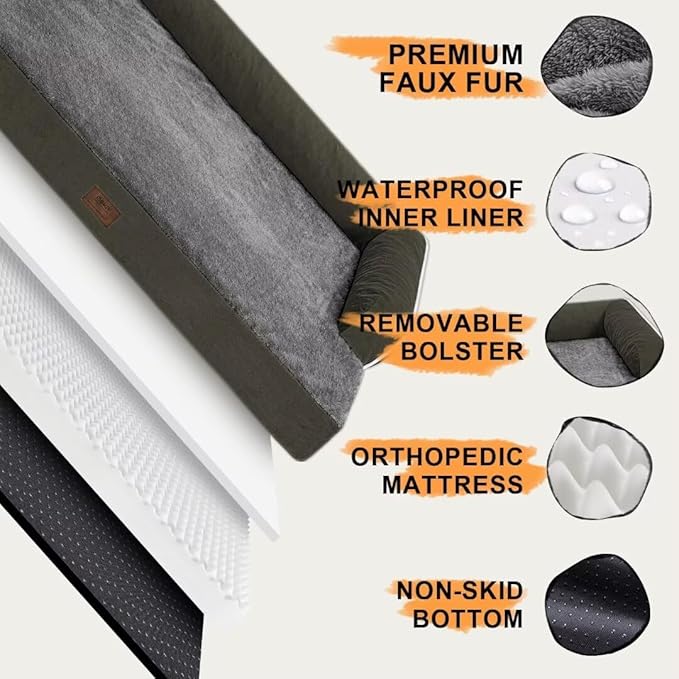 Large Dog Bed Orthopedic Washable - XXL Large Big Dogs - Waterproof with Removable Cover - Memory Foam - Beds Bolster Pet - Dogs Couch Sofa Bed - Dark Green Dog Beds