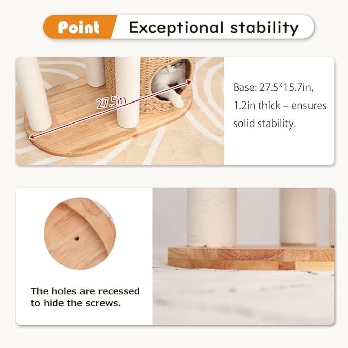 - Stable & Multi-Level Play Structure-Built with durable engineered wood and thick posts, this cat climbing furniture supports multiple cats and encourages climbing, scratching, and perching at various levels.