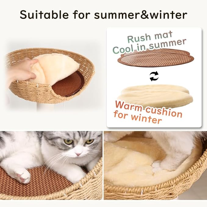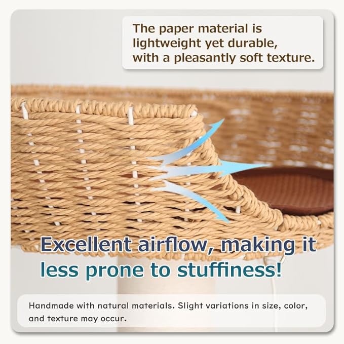 - Cozy Hideaway & Wicker Basket Bed-Includes a soft enclosed wicker cat condo on the base for privacy and a breathable top basket for napping — the perfect retreat for both large cats and kittens.