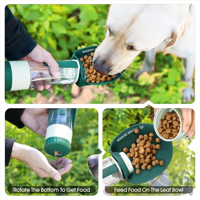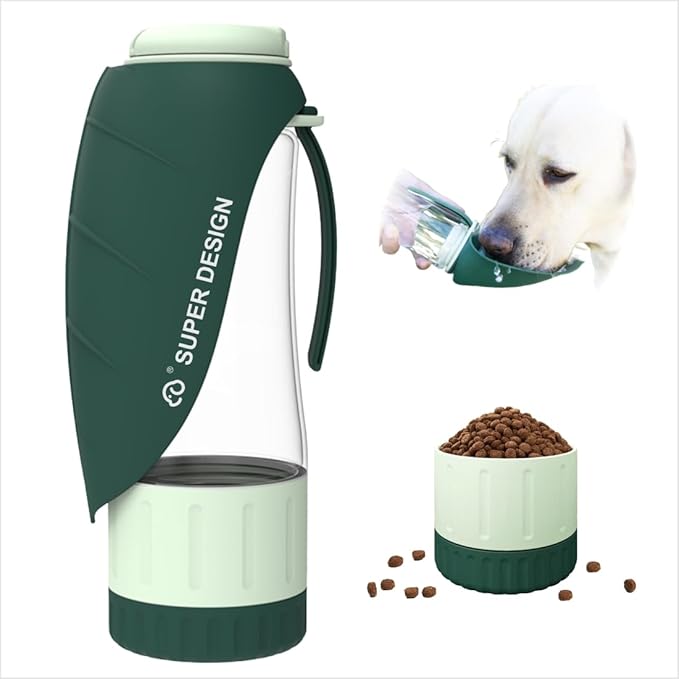 SUPERDESIGN Green Dog Water Bottle Portable with Food Container, Dog Travel Water Bottle Easy-to-Use, Leak-Proof Design Pet Water Bottle Ideal for Travel,Hiking and Dog Walking Accessories