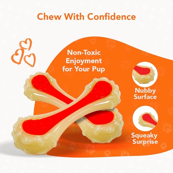 - Safe and Non-Toxic: Designed with your pet’s safety in mind, our heavy-duty nylon dog toys are non-toxic and non-abrasive. Our dental chewing bones for dogs ensure safe playtime, giving you peace of mind while your dog enjoys their new favorite toy.