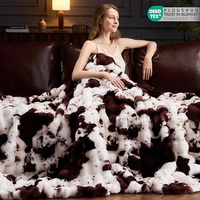 Faux Fur Throw Blanket for Couch, Fluffy Fuzzy Plush Bubble Blanket, Soft Warm Cozy Shaggy Rabbit Blanket, Luxury Decorative Gifts for Sofa Bedroom Living Room, 60x50inch (Cow Print-Brown)