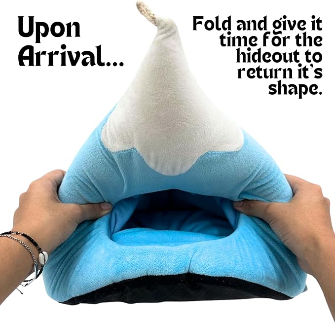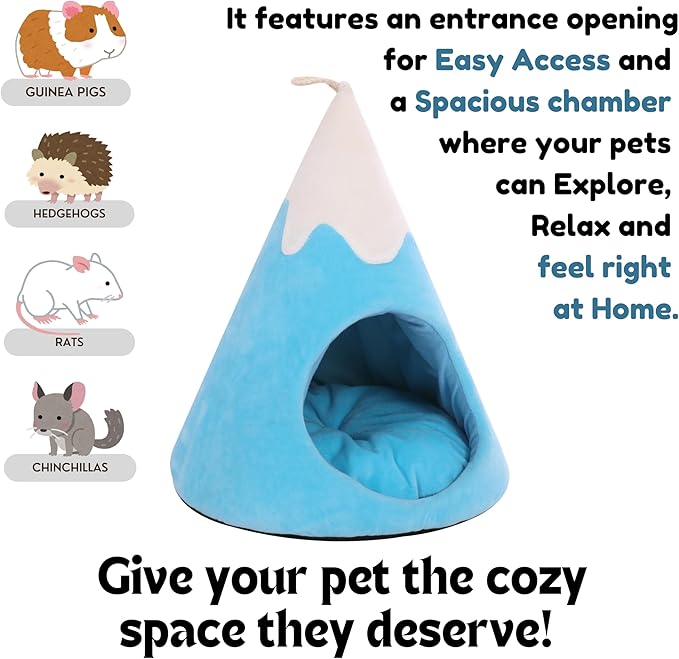 - [Cute Aesthetic] - Featuring a charming sky blue color and a playful cone-shaped exterior, the guinea pig fleece hidey adds a delightful touch of fun to your small animal's habitat.