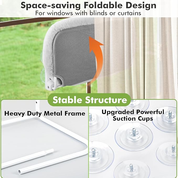 - 【Foldable Cat Window Perch】Zoratoo cat perch is foldable and does not interfere with the daily use of closed curtains or blinds, making it an ideal space-saving solution. You can put it down when your cats want to nap or watch outside the window. Fold it up for privacy or to reduce clutter.
