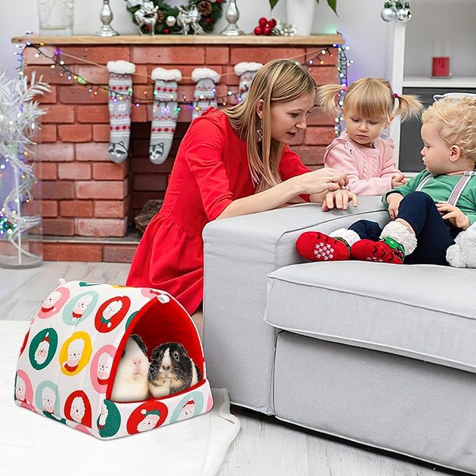 - Warm and Comfortable: The Christmas Guinea pig bed is equipped with a detachable pee pad inside, and the non-slip bottom ensures hamster nest stays in place. With ultra soft fabric, your furry children will feel comfortable and warm in the Guinea pig bed house. Suitable for small animals such as hamsters, rats, chinchillas, ferrets, Guinea pigs, dwarf rabbits, etc