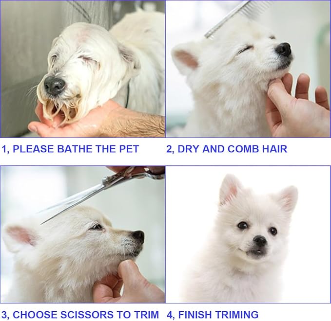 - Round Tips For Safety: No worry about accidentally poking pets, especially when grooming sensitive areas(such as face, ears, eyes, nose, paws), because our dog grooming scissors kit has rounded end tips