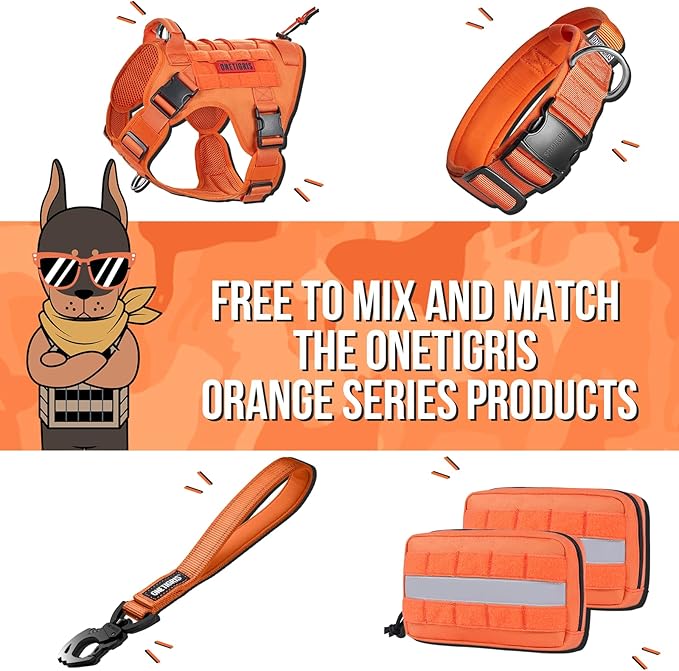 OneTigris Tactical Dog Harness Vest,No-Pull Service Dog Vest with Hook & Loop Panels,Adjustable Dog Vest Harness for Walking Hiking Training(Orange,S)