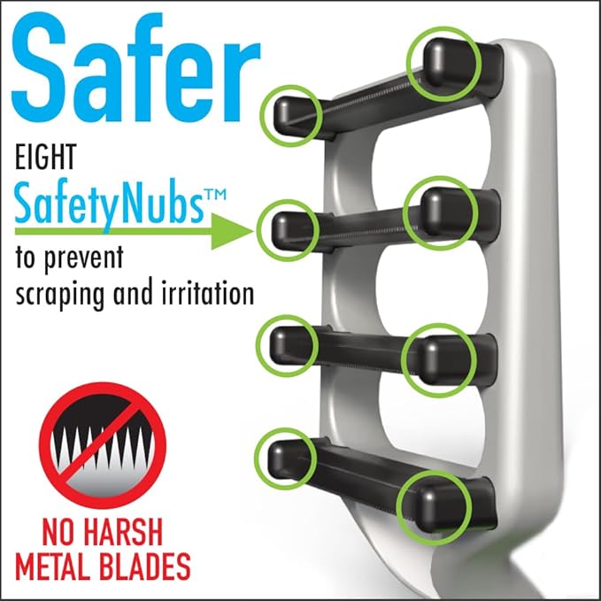 - Safer: Eight SafetyNubs prevent scraping and damage to your pet's skin. Unlike other dog deShedding tools that use harsh metal blades, FUR4 uses an advanced composite carbon fiber for a safer deShedding experience.