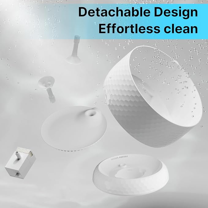 - 【Separable Water Tank and Base】The water tank of this wireless cat water fountain and the power supply base are separable designs, which is safer than a charged non-separable tank. It has a built-in water level detector, red light alerts when water is out, the pump will automatically stop working, and automatic power off to prevent the device from burning out, Don't have to worry about your pets being in danger.