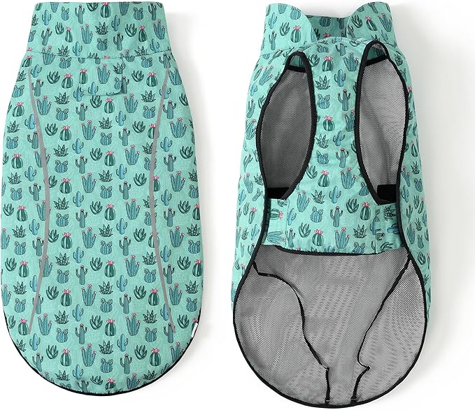 Mile High Life Dog Raincoat, Adjustable Waterproof Reflective Rain Jacket for Small Medium Large Dogs, Lightweight Breathable Pet Rain Coat with Leash Hole(Green Cactus,M Chest 26-32")