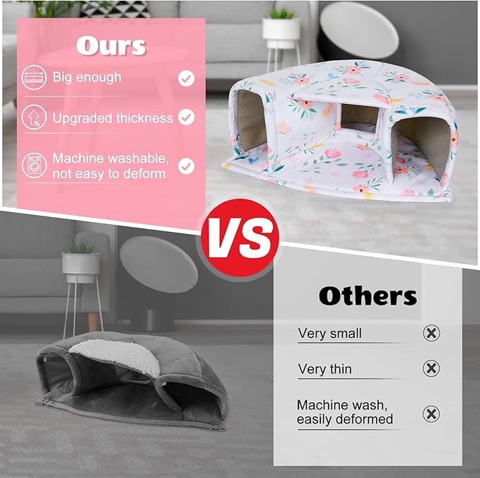 - Machine Washable: The guinea pig hideout is made of short plush and high-density elastic sponge; Not only is it very soft to the touch, but also more comfortable and warm, the fabric is thick enough to hold its shape and stay upright after many washes