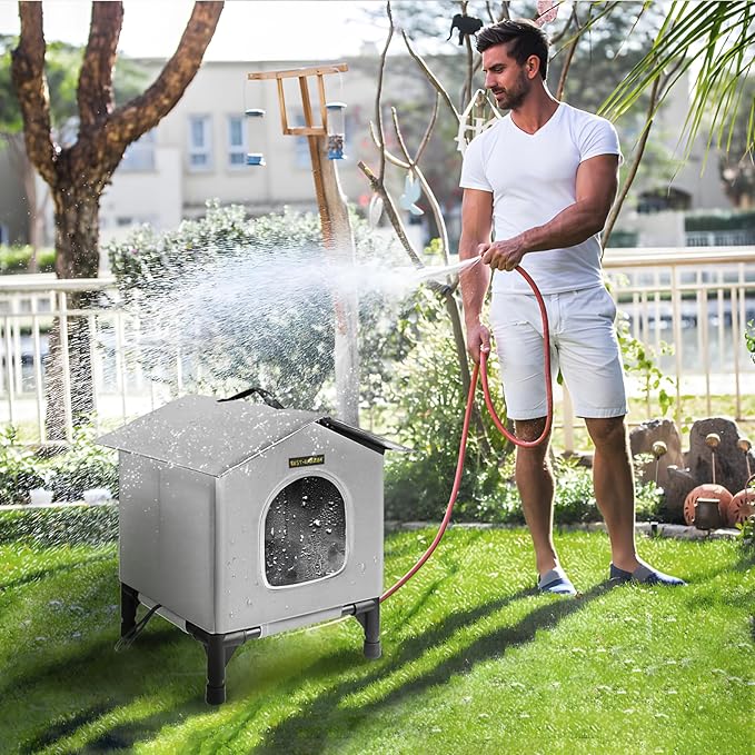 - Storm-Proof Elevated Structure--The detachable elevated frame of our elevated cat house keeps your cat comfortably above ground moisture, ensuring a dry and cozy resting spot.