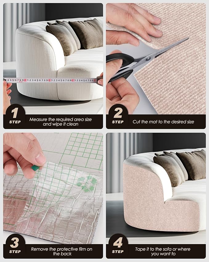 Cat Scratch Furniture Protector, Trimmable Self-Adhesive Carpet, DIY Climb Cat Scratcher Mat for Covering Cat Tower and Couch Protector from Cat Claws (78.7x15.8in Beige)