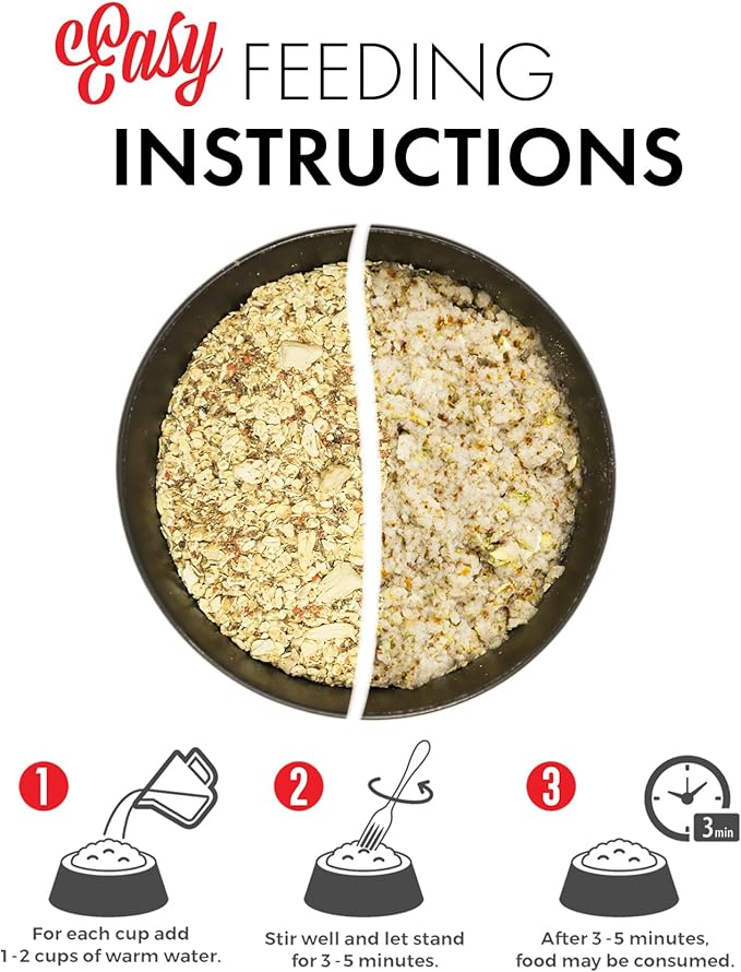 - Serve as a complete meal, tasty topper, mix-in, or with lick mats and interactive toys - just add water to create this protein-packed, wholesome recipe. Makes 5 pounds of fresh food.