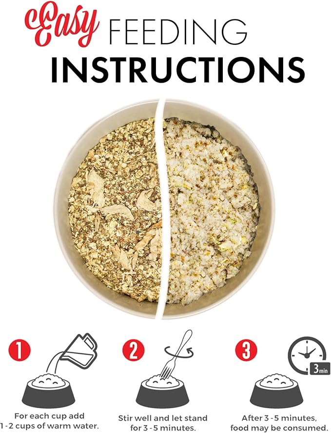 - Serve as a complete meal, tasty topper, mix-in, or with lick mats and interactive toys - just add water to create this protein-packed, wholesome recipe. Makes 5 pounds of fresh food.