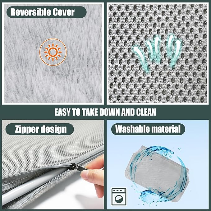 - 【Soft Reversible Cover】Tailored for year-round use, our cat window hammock features a 2-in-1 cover with a zipper for a quick switch. Crafted from imitation rabbit plush and sandwich mesh, your indoor cats will adore this cozy window seat, providing a perfect vantage point to watch birds