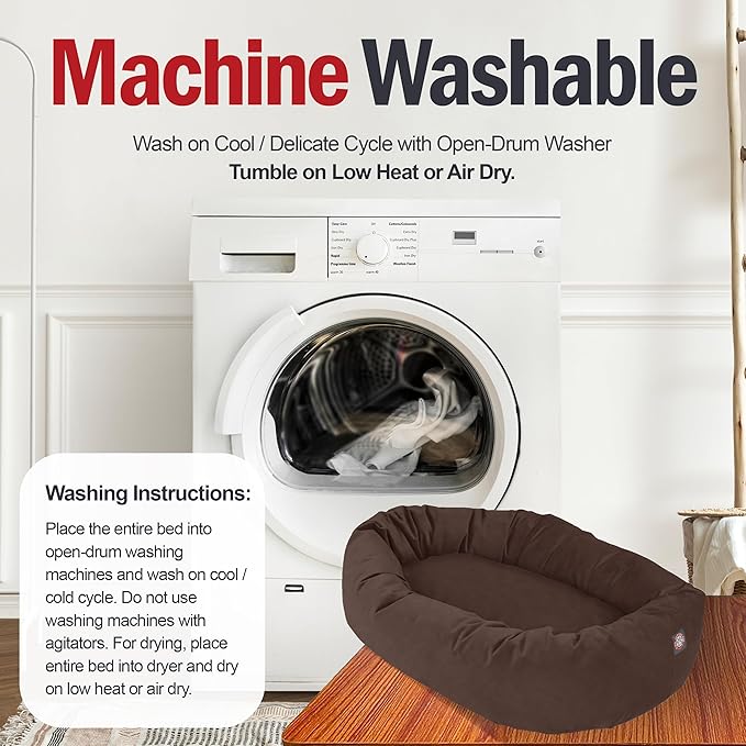 Majestic Pet 32 Inch Suede Shredded Memory Foam Mix Calming Medium Dog Bed Washable 32x23x7 (Inch) - Cozy Soft Round Donut Dog Bed with Spine for Head Support - Pet Bed Chocolate