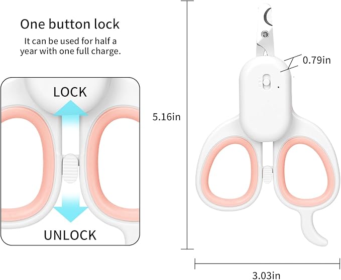 - Reassuring Safety Lock: We have designed safety snaps for pet nail clippers. The safety lock prevents your child from being scratched by the sharp cutting head, you can put it anywhere without worrying about safety