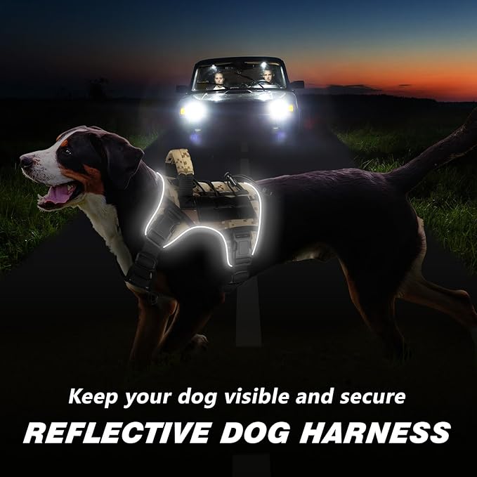 - Military-standard Materials: WINGOIN dog harness for small dogs is made of military nylon and adopts an upper and lower two-layer structure. The outer camouflage pattern is 1000D nylon with sturdy stitching for extra durability, and the inner layer is a mesh material with excellent breathable, comfortable fit and no harm to the dog.