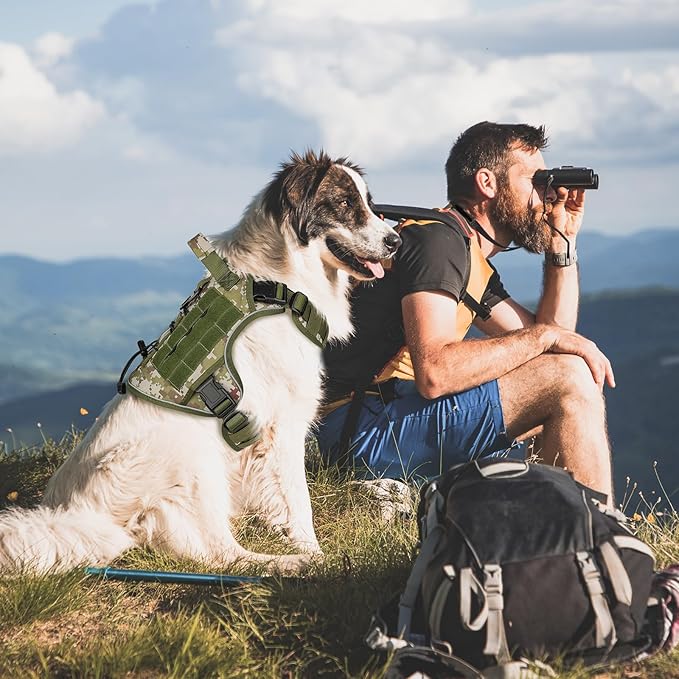 - Military-standard Materials: Extra large tactical dog harness is made of military nylon and adopts an upper and lower two-layer structure. The outer camouflage pattern is 1000D nylon with sturdy stitching for extra durability, and the inner layer is a mesh material with excellent breathable, comfortable fit and no harm to the dog