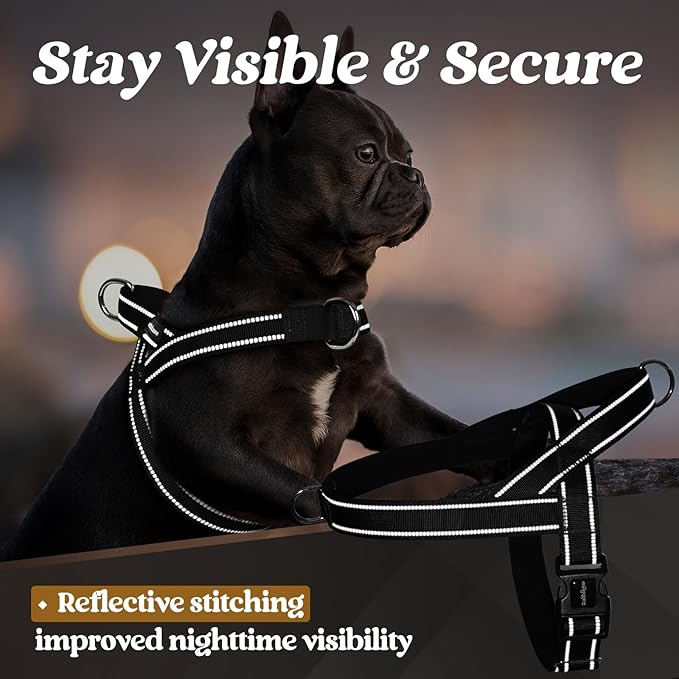 - Convenience on the Go: The harness is made of polyester and has just one buckle to adjust, making it incredibly simple to put on and take off. All you need to do is slide the harness over your dog's head, buckle it, and adjust the strap for a perfect fit