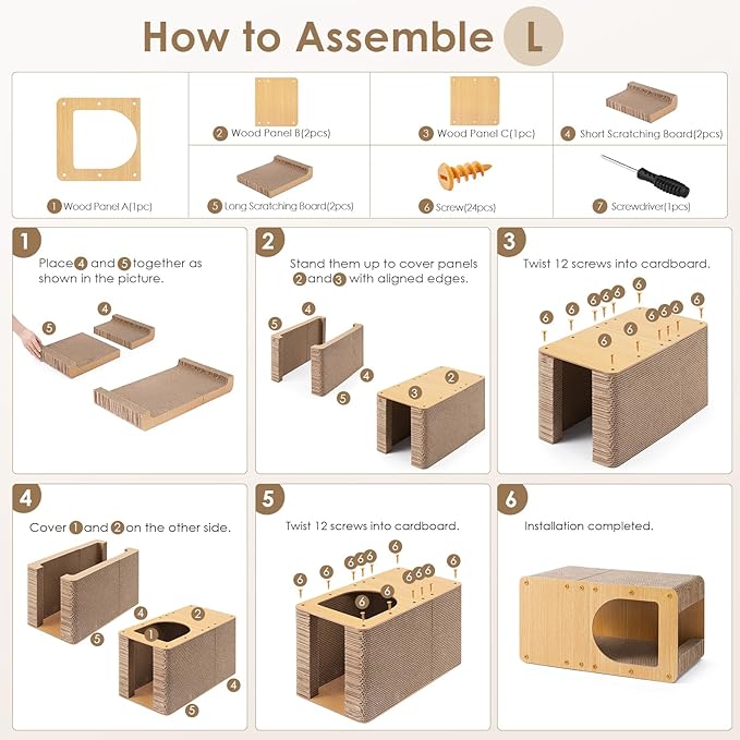 - ๐บEASY INSTALLATION: Our cardboard cat house adopts a simple installation method and comes with instructions and necessary tools. The cat scratchers for indoor cats also provide an installation video so that you can install it quickly and easily.
