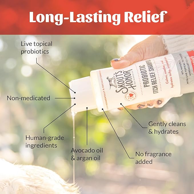 Skout's Honor Probiotic Itch Relief Shampoo for Pets - Non-Medicated, Fragrance-Free, Paraben & Sulfate-Free, with Avocado Oil & Omega 3's, 8oz, 2-Pack
