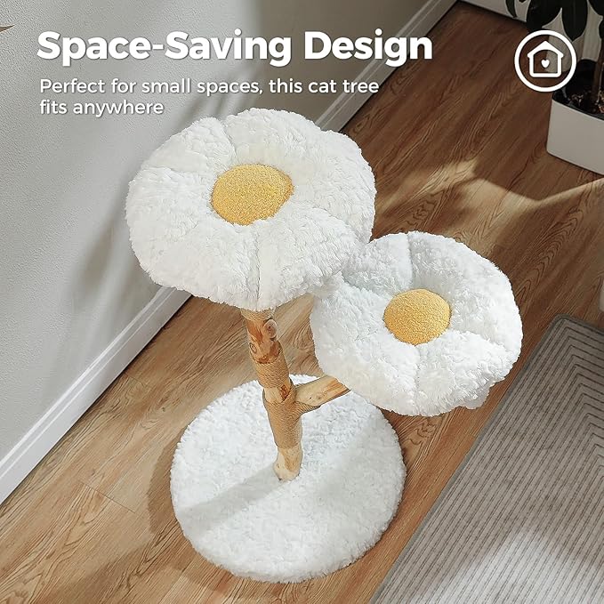- LUXURIOUS AND ELEGANT: This wood flower cat tree with two cute flower beds features soft cloud fleece fabric, adding a sophisticated touch to your home. solid wood cat tree tower's sleek design and plush materials offer style and comfort for your cat's perfect retreat.