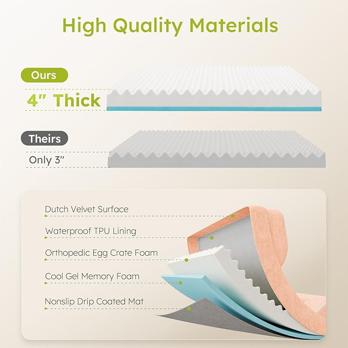 - Orthopedic Support:CWAWZ's large breed dog bed is filled with a 4" thick layer of high density orthopedic foam to cushion dog's joints and provide optimal support as they sleep, especially suitable for older dogs with anxiety and large dogs with arthritis