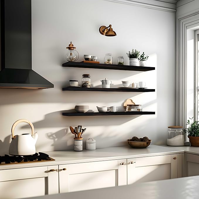 - Rustic Floating Shelves - The rustic floating shelves constructed of farmhouse solid wood boards, that blend perfectly with the rustic and contemporary style, which would be an attractive decoration fitting to any design style of your room.