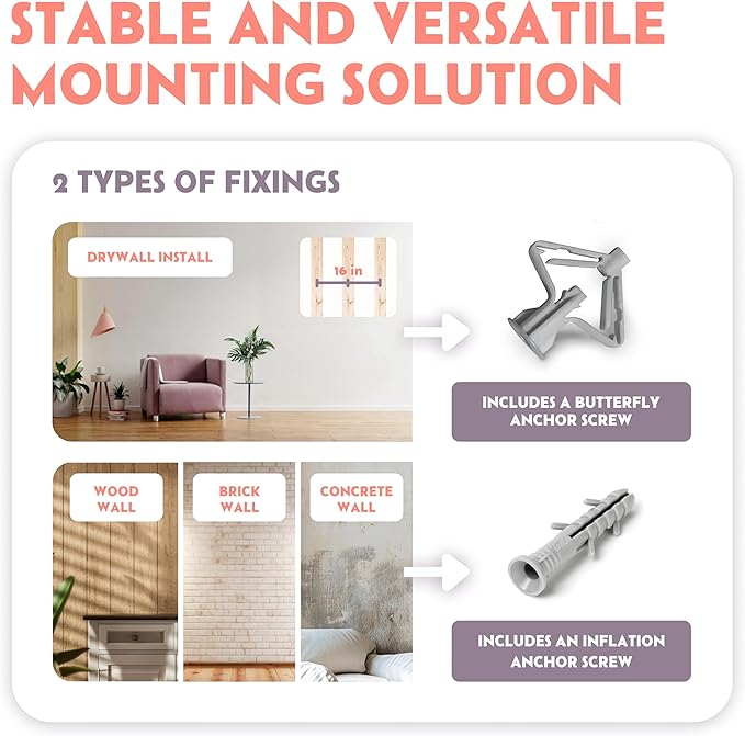 - EASY WALL INSTALLATION: Comes with hardware for both drywall and concrete walls, ensuring secure attachment and peace of mind.