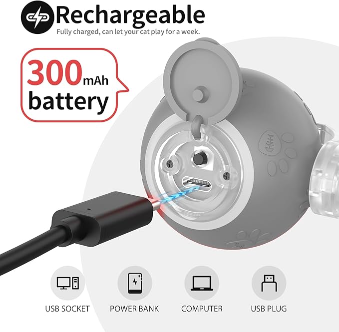 - **Convenient Type-C Charging**: Never worry about replacing batteries! Our interactive cat toy is powered by a built-in rechargeable battery. Simply use the included Type-C USB cable to charge the electric cat toy, ensuring it's always ready for playtime with both kitten toys and adult cats alike.