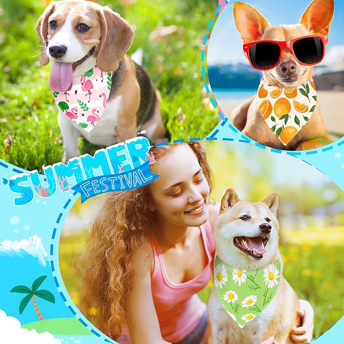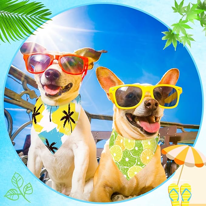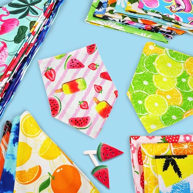 - Summer Themed Design for Easy Match: Our bandannas for dogs and cats are printed with various summer patterns on the surface, such as fruit, Hawaiian trees, flamingo and more. Making your pets look special and charming during summer season .