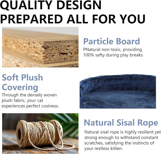 - 🐱 【Posts for Scratching Covered in Sisal 】These are scratching surfaces that are integrated into the framework. Cats love to bury their claws in sisal because it's a sturdy substance with a coarse texture. Our cat tree promotes healthy scratching habits and helps discourage cats from damaging furniture by offering dedicated spaces for them to scratch.