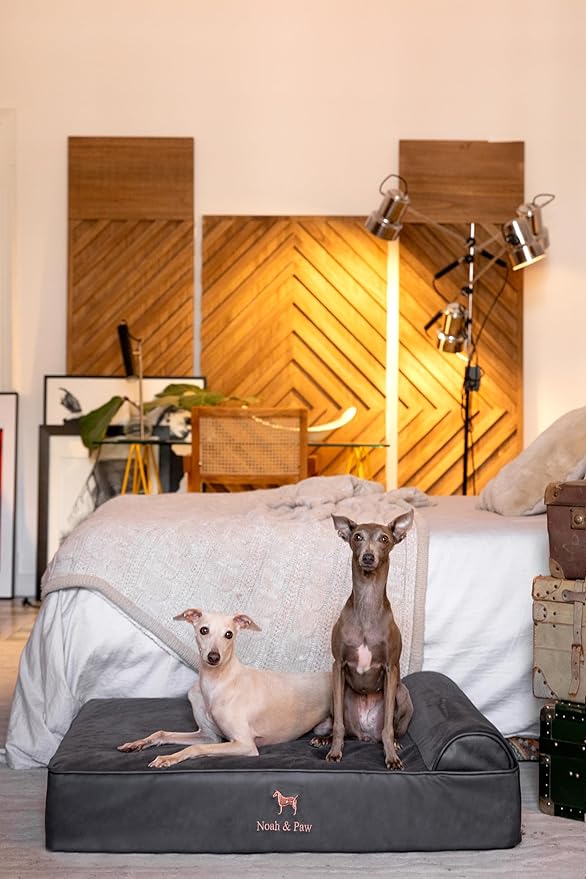 NOAH & PAW Large Dog Bed, 35x25x8.7 Inch, Orthopedic Dog Beds, Eggshell Memory Foam Infused with Cooling Gel, Waterproof, Machine Washable, Includes Inner Cover (Faux Leather)