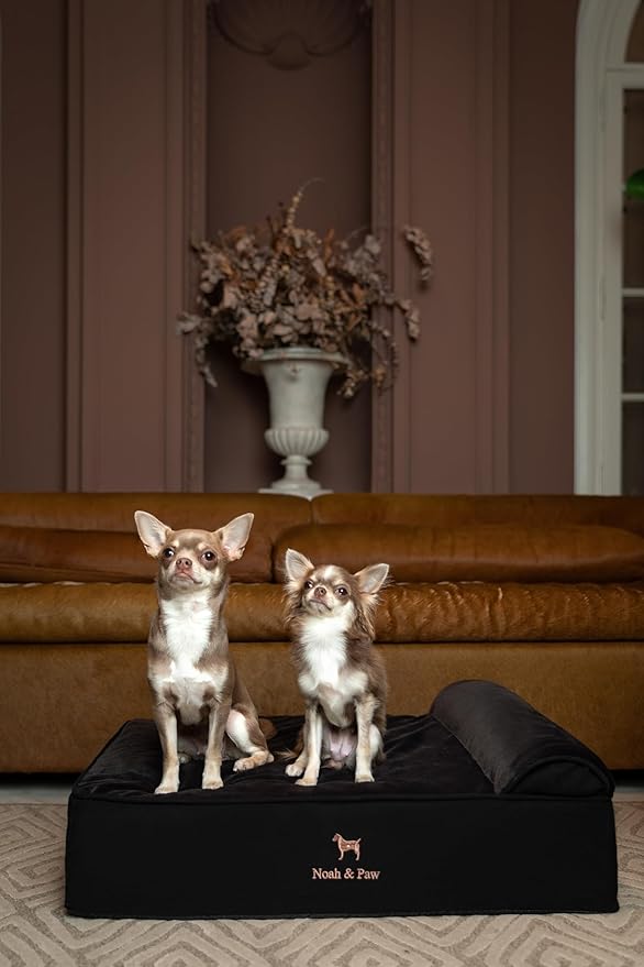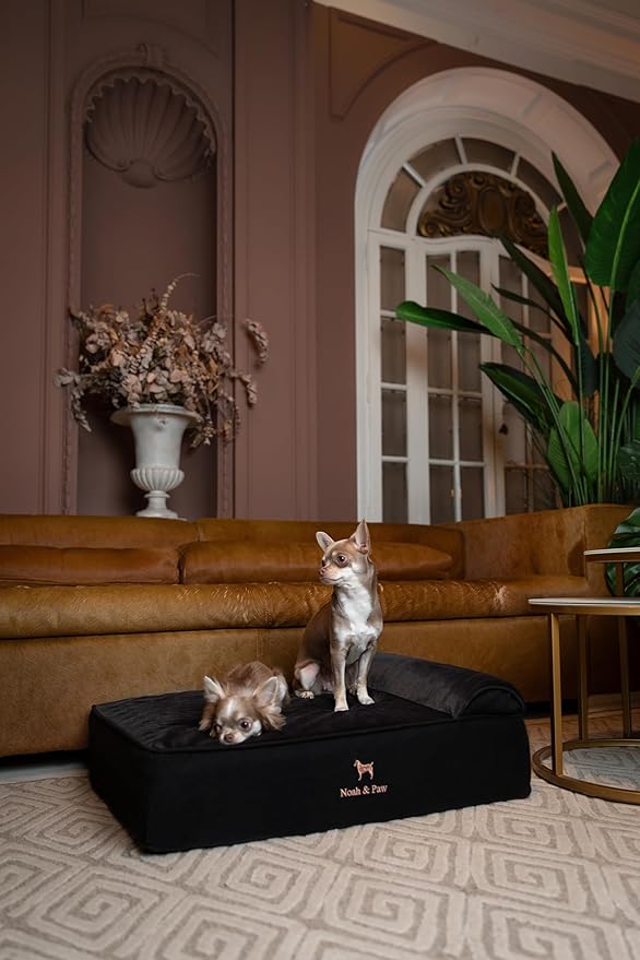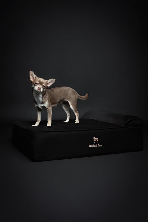 - Human-grade dog bed: The orthopedic dog bed features a 6" thick base excluding the headrest. The foam design is contracted from a 3-layer, 4-inch base (30D) + 1" memory foam + 1" eggshell foam infused with cooling gel. Creating a comfortable raised dog bed.
