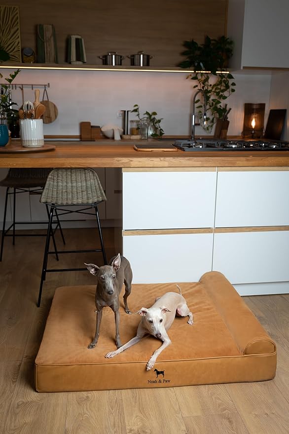 NOAH & PAW Large Dog Bed, 35x25x8.7 Inch, Orthopedic Dog Beds, Eggshell Memory Foam Infused with Cooling Gel, Waterproof, Machine Washable, Includes Inner Cover (Faux Leather)