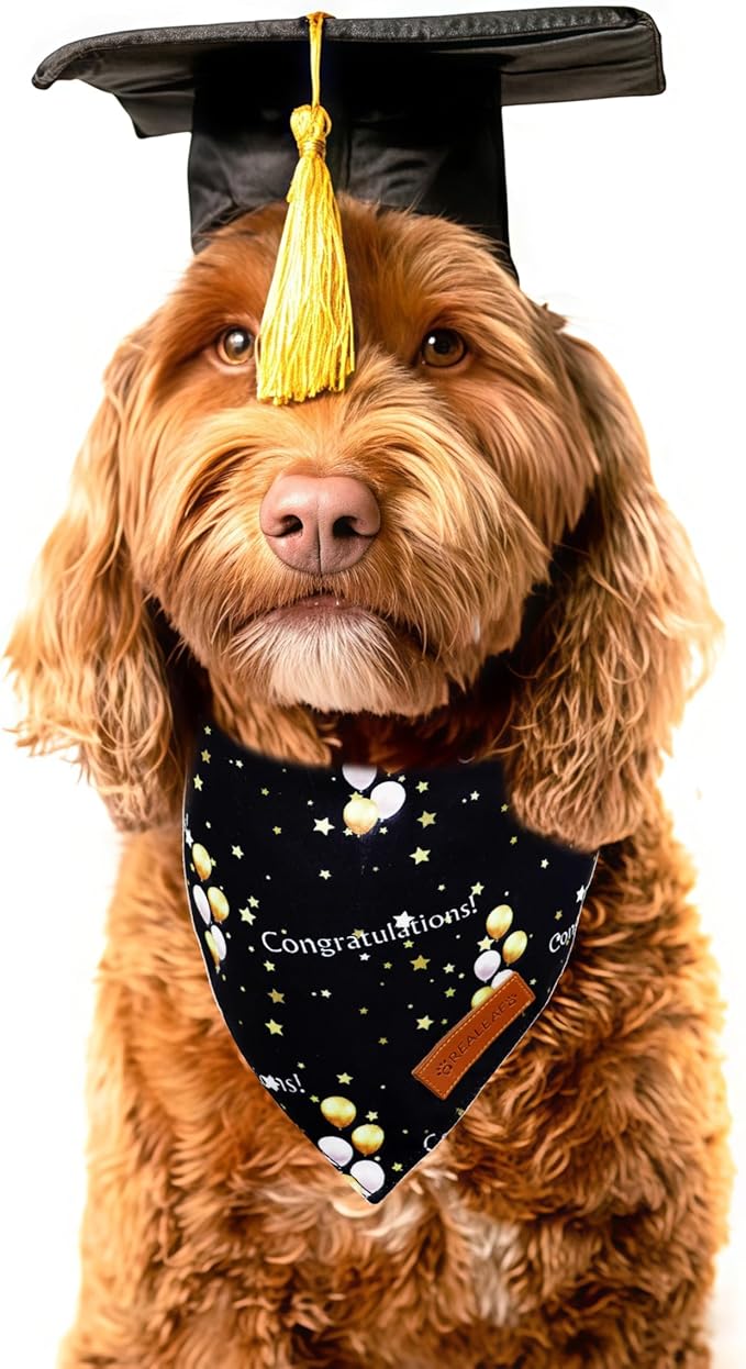 - [ GRADUATION DESIGN ]:Featuring Graduation pattern with mortarboard. These bandanas add a cute and stylish touch to your furry friend's look.