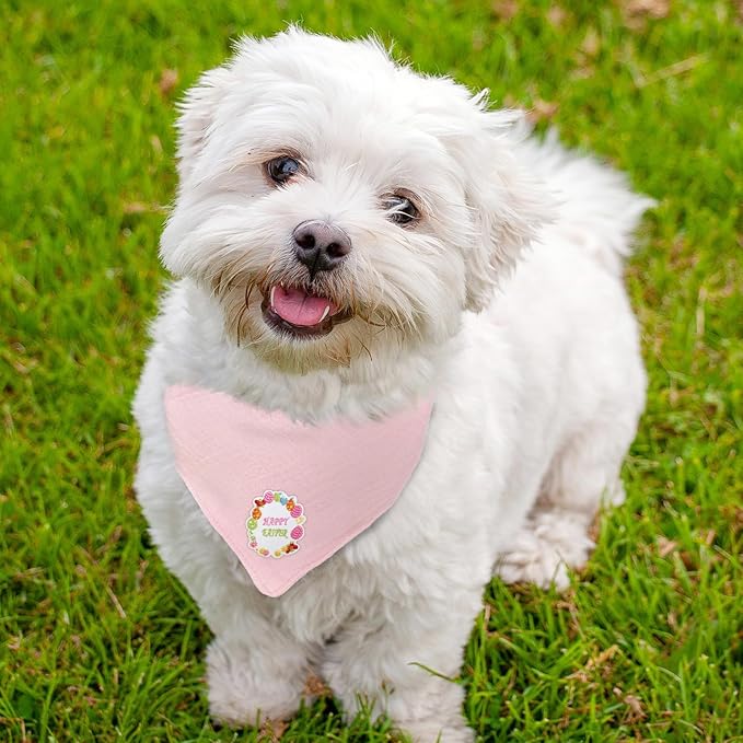 Adjustable for Bandanas Solid Dog Scarf with Embroidered Letters, Pink - Medium