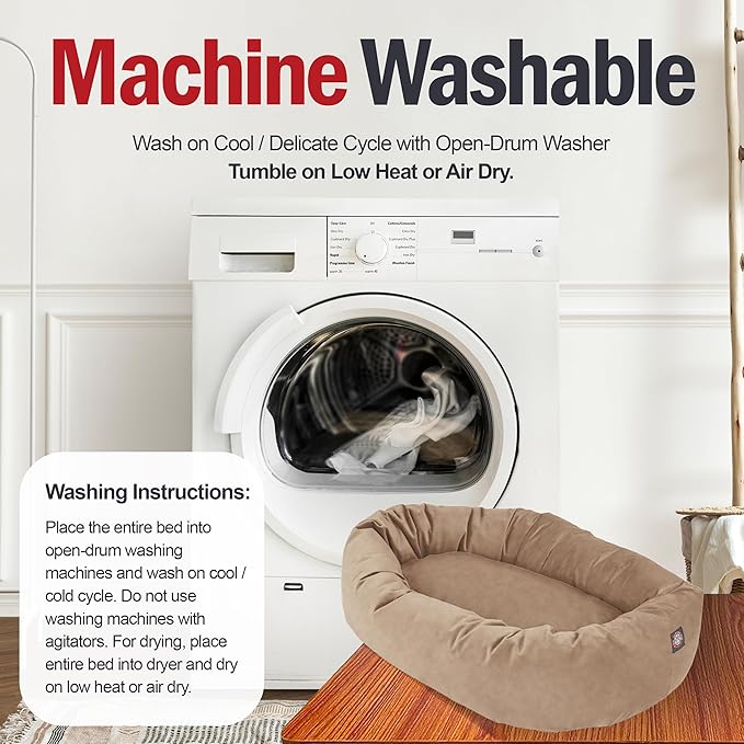 - [Elegance meets durability] - Crafted with premium high-loft polyester fill, the Majestic Pet dog bed offers a regal sleeping experience, lasting quality, and exceptional loft and coziness. The cushioned pillow adds an extra layer of comfort to pamper your pet. No more compromising on comfort, style, or ease of cleaning. Upgrade your pet's lifestyle today with our round dog bed.